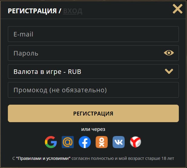 Каждый пользователь может перейти по ссылке ниже, чтобы система перекинула на официальный сайт casino. После этого необходимо нажать на кнопку «Регистрация» – расположена в правом верхнем углу. Это откроет регистрационную форму, в которой нужно указать следующие данные:
